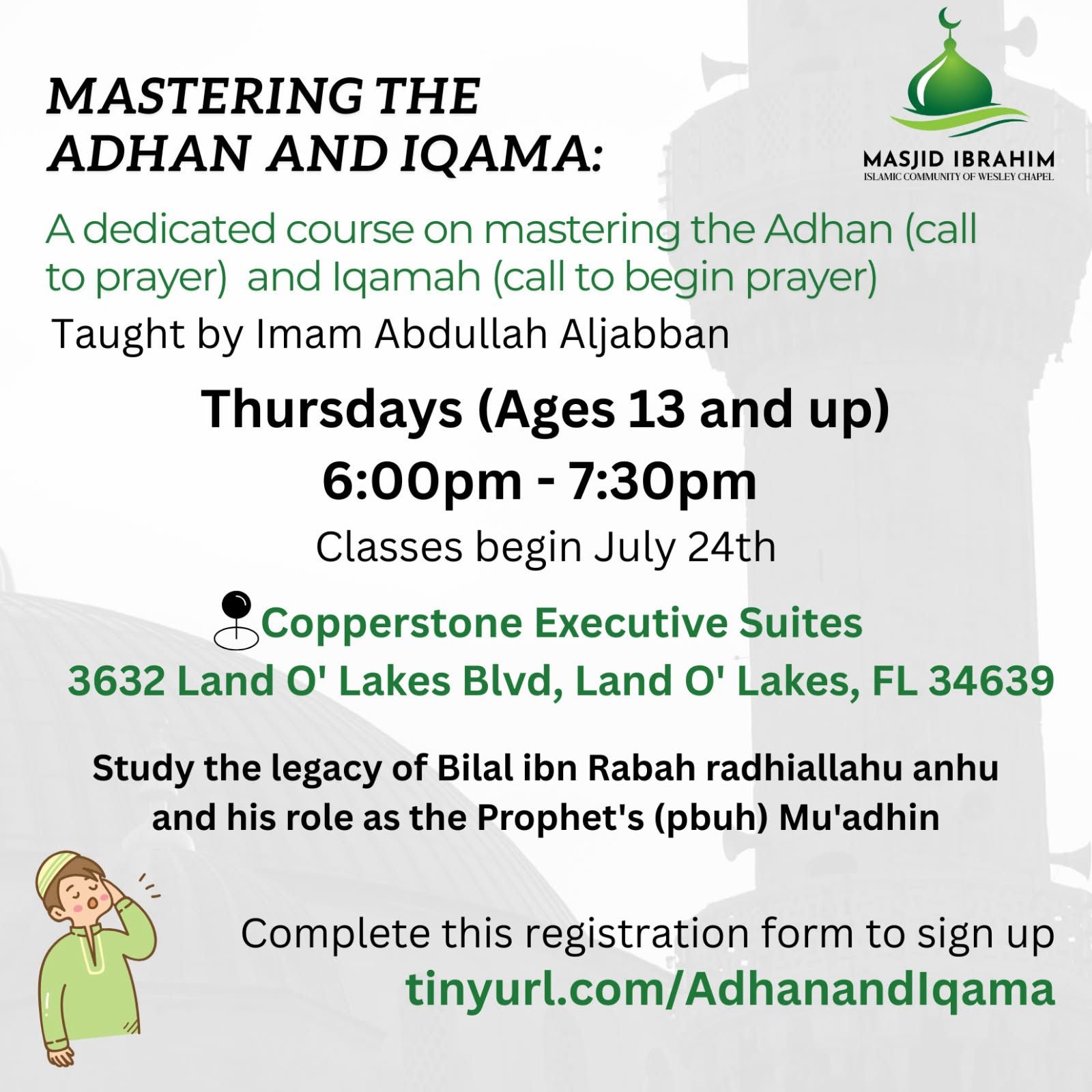 A dedicated course on mastering the Adhan (call to prayer) and Iqamah (call to begin prayer)